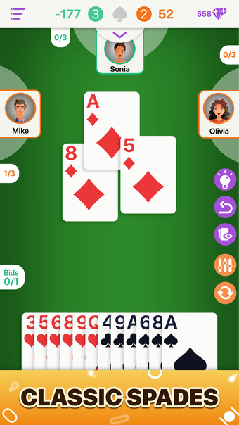 Dzięki Spades możesz ciesz się klasycznym doświadczeniem gier karcianych ze strategicznym przeciwnikiem AI. Zaprojektowaliśmy go, aby poprawić twoje strategiczne myślenie i umiejętności gry.